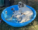 This is River hanging with the puppies' father Blue. Blue was born in the Blue Ridge Mountains in NC. River was born in Florida. They are great work dogs in charge of protecting the chickens and the horses.